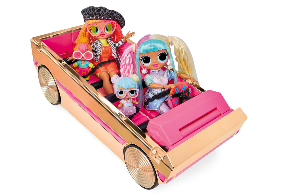 Для появляющихся каждый сезон новых куколок ЛОЛ Сюрприз никогда не будет мало аксессуаров, автомобилей и развлечений. Среди новинок прошлого года – стильный и необычный кабриолет с золотыми основанием кузова, золотыми дисками на колесах и прозрачным розовым пластиком сверху, сквозь который виден салон автомобиля. Это машина трансформер, поскольку может использоваться для езды: подвижные колеса, вращающийся руль и стильная панель управления, два розовых удобных одиночных кресла с ремнями безопасности и вместительный диванчик с ремнями безопасности. Автомобиль вместит в себя несколько куколок ЛОЛ, в том числе из серии OMG. Второй вариант использования – бассейн. Для этого верхняя прозрачная часть кузова полностью снимается, переворачивается и наполняется обычной водой. Третий вариант трансформации – танцевальная площадка. Чтобы сделать ее интересной, снимается прозрачная розовая крыша. Затем нужно потянуть за кузов с обеих сторон, чтобы основание кабриолета раздвинулось. Панель управлени