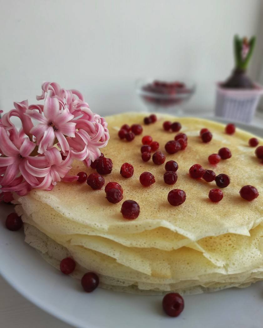 Очень простые, вкусные, тонкие и пористые блинчики без соды. Можно готовить с любой начинкой #масленица Ингредиенты: молока (200 миллилитров), муки (130 грамм), кипятка (200 миллилитров), яйца (среднего размера или 2 крупных), сахара (можно больше или меньше), растительного масла, соли Способ приготовления: В тарелку разбить яйца, добавить сахар, соль и растительное масло. Перемешать до однородности. Влить молоко и перемешать. Всыпать просеянную муку и хорошо перемешать. Влить кипяток и хорошо размешать. Оставить тесто настояться, при комнатной температуре, 20-30 минут. Выпекать блины на хорошо разогретой сковороде (смазанной растительным маслом), на огне выше среднего (я выпекала на 7 из 9), с двух сторон до золотистого цвета. Приятного аппетита!