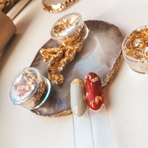 Удобнее всего вам будет купить часть из перечисленного списка, т.к сразу всё вам не понадобится и будет пылиться в ящике, а может и вообще никогда не пригодится. Прислушивайтесь к вашим клиентам, проводите опрос и покупайте по необходимости. 1 - Стразы и украшения из металла. Они существуют разных видов, размеров, формы и цветов, что дополнит маникюр сиянием, объемом и индивидуальностью и придадут праздничный вид. 2 - Блестки. Тут целая феерия: и слюда, и шиммеры, и конфетти, и песок, даже хрустальная крошка. Выбор есть на каждый вкус и кошелек! 3 - Фольга. Используется для финиша оформления ноготков. Бывает отрывная, переводная и в форме осколков. 4 - Разнообразные наклейки, стикеры, слайдеры и трафареты. При их помощи можно создать интересный маникюр за считаные минуты. 5 - Втирка и пудра. Придаст уже готовой вашей работе эффект металла или зеркала. 6 - Штампинг. Это набор, в который входит силиконовый штамп и трафарет. Идеально подходит для тех, кто еще не научился рисовать на ногтя