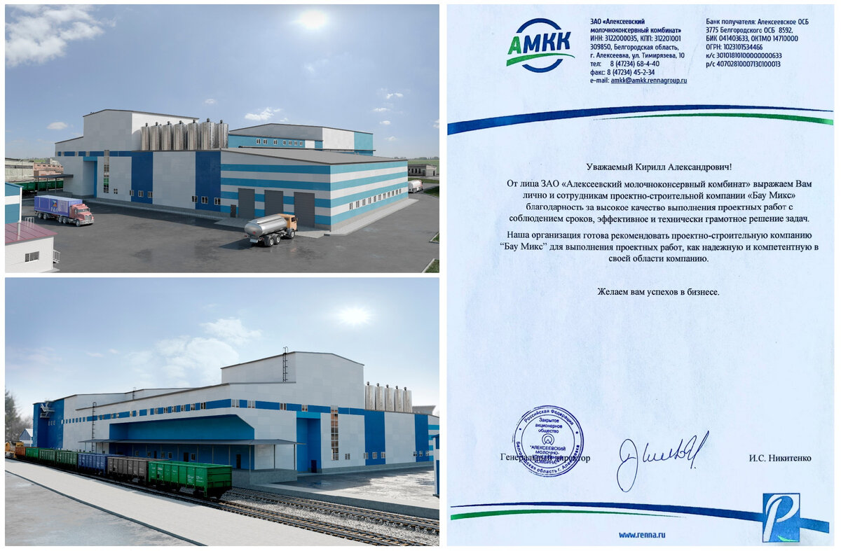 Получили благодарственное письмо от компании «Алексеевский Молочноконсервный Комбинат», с которой мы сотрудничаем уже долгое время. Нами была разработана документация двухэтажного здания пищевого производства.