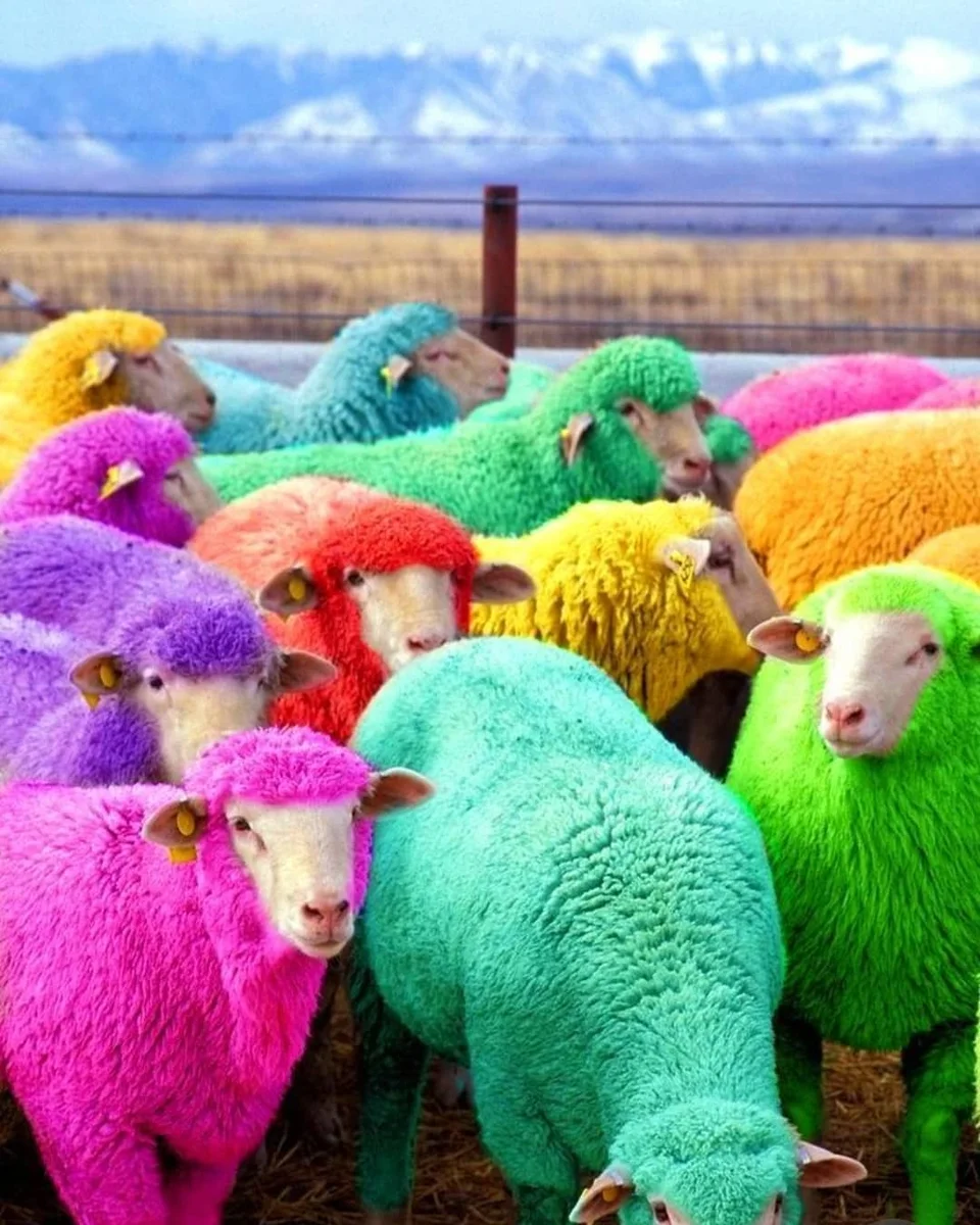 Впрочем, идея пошла дальше. И теперь овец не просто красят в однотон, но и превращают в настоящую радугу на ножках. И в этом случае некоторый рекламный аспект тут уже и правда проскальзывает. Изначально речь, конечно, суть была в другом, но теперь фермеры просто совмещают выгодное с полезным.