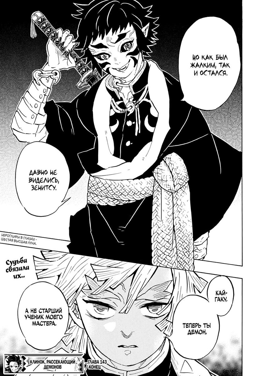 А вы знали что? Зеницу в одиночку смог убить 6 высшую луну. У его учителя Джигоро было 2 ученика Зеницу и Кайгаку. Зеницу смог изучит только 1 кату и самую простую а Кайгаки все 5 кроме 1 и их учитель выбрал приемником Зеницу, так, как считал что этой 1 кату достаточно. И Кайгаку возненавидел Зеницу и их пути разошлись. Зеницу стал истребителем демонов и однажды он узнал что его учитель Джигоро бывший столп грома вспорол себе живот и за того что... его 2 ученик стал демоном 12 лун. 6 высшей луной.