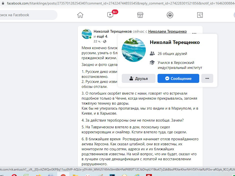 6. В ближайшее время Росгвардия начинает отлов промайданного актива Херсона. Как сказал штабной, они все известны, их мониторили по соц.сетям, адреса их и их ближайших родственников известны. На мой вопрос, что им будет, сказал что в лучшем случае денацификация с лопатой на восстановлении разрушенного.