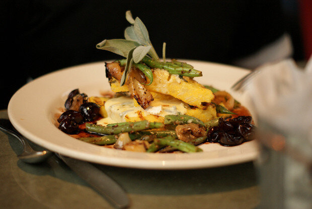 ИНГРЕДИЕНТЫ ПОРЦИИ 4 Кукурузная мука для поленты 300 г Пшеничная мука 2 столовые ложки Шампиньоны 250 г Соль по вкусу Специи по вкусу 1/Вскипятить в кастрюле 1,5 литра воды и добавить 30 грамм соли, всыпать и при помощи венчика размешать в подсоленной воде кукурузную муку. Варить на среднем огне 20–25 минут, постоянно помешивая, чтобы каша не сбилась в комочки и не пригорела 2.Смочить водой противень, выложить в него готовую кашу, лопаткой равномерно распределить по поверхности и дать остыть. Холодную поленту разрезать на кусочки. 3.Мелко нарезать лук и шампиньоны. Обжарить лук на растительном масле до золотистого цвета, добавить грибы и жарить, до тех пор пока жидкость не выпарится и грибы не приобретут такой же цвет. Добавить соль и специи, по желанию — зелень и соевый соус. 4.Влить в смесь стакан воды, выпарить примерно половину и аккуратно, постоянно помешивая, добавить две столовые ложки муки. Через несколько минут соус загустеет и будет готов. Понравился рецепт — поделитесь им с