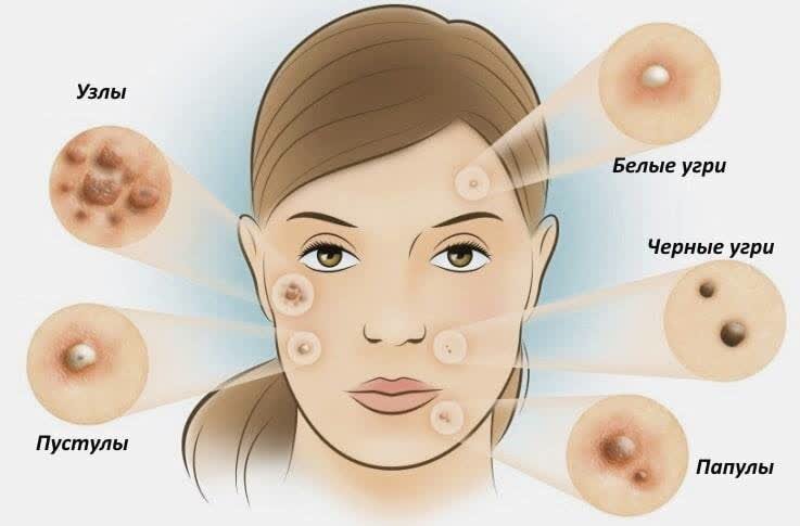 Виды прыщей на лице: