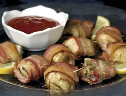 Ангелы на лошадях. Это горячая закуска, в приготовлении нет ничего замысловатого и сложного. Берется устрица заворачивается в бекон, пронизывается шпажкой и обжаривается на решетке гриль. Подавалась в качестве аперитива на застольях. Разновидностью данного блюда являются «Дьяволы на лошадях». Здесь устрицу заменили черносливом с орехами. Считается закуской рождественского обеда. Мозги ткача. Этот продукт уже разновидность французской кухни. Готовится из творога заправленного оливковым маслом или сметаной, уксусом и украшенный зеленью. Подавался на хлебных гренках или тарталетках. Приготовить довольно просто. А может быть вы уже готовили эту закуску, только не знали, что она имеет такое название. Достаточно в творог добавьте чеснок, мелко рубленную зелень, заправьте сметаной или майонезом. Выложите смесь на тарталетки или гренки. "Мозги ткача" готовы! Щенок чау-чау. С виду это блюдо действительно похоже на собачий корм. По сути, это любые злаковые хлопья, заправленные растопленным шокол