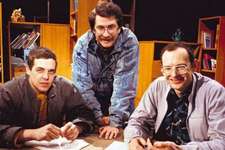 Уже долгие годы в первый календарный день весны я порой вспоминаю об убийстве Влада Листьева. Этот журналист был родом из супер-знаменитой когда-то программы "Взгляд", возникшей на заре перестройки, в которой он вместе с двумя другими теле-мушкетерами в этой троице - Александром Любимовым и Дмитрием Захаровым - вел сразу ставшую культовой на тогдашнем безрыбье вечернюю телепередачу в прямом эфире. Потом ребята разбежались кто куда, а с Листьевым произошло нечто интересное: он занял поста генерального директора недавно образованного канала "ОРТ". На начало марта 1995 года он вел передачу "Час пик", которую спародировал с очень известного тогда шоу на американском телевидении - так называемого "шоу Ларри Кинга": Вот как выглядел в этой передаче Влад Листьев - как видим, тоже в галстуке и в подтяжках, как Ларри Кинг: И вот в ночь на 1 марта 1995 года произошло нечто трагическое и доселе невиданное - вся страна в едином порыве содрогнулась, когда пришла весь о заказном убийстве любимц