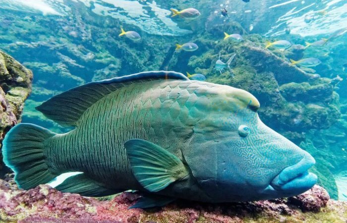 Тихий и Индийский океаны таят в своих глубинах много необычных обитателей, среди которых плавает экзотическая рыба с величественным именем – Наполеон. Рыба-Наполеон крупнейшая из представителей рода губановых. Ее длинна достигает двух метров, а вес – 200кг. Имя свое рыба получила благодаря выросту на голове, который очень напоминает треуголку известного императора. Как и большинство рыб семейства губановых, Рыба-Наполеон является протогиническим гермафродитом. Практически все самцы этого вида изначально рождались самками и были способны даже метать икру. Однако, со временем, они раздаются в размерах и становятся самцами. Рыба-Наполеон очень общительная и любознательная. Она с легкость пойдет на контакт с человеком и, если Вы часто будете с ней видится, она запомнит Вас и будет узнавать. Известен очень любопытный случай, когда Рыба-Наполеон подружилась с ныряльщицей. Это случилось недалеко от Мальдивских островов, ныряльщица нашла раненую Рыбу-Наполеона, женщина стала смотреть за рыбой