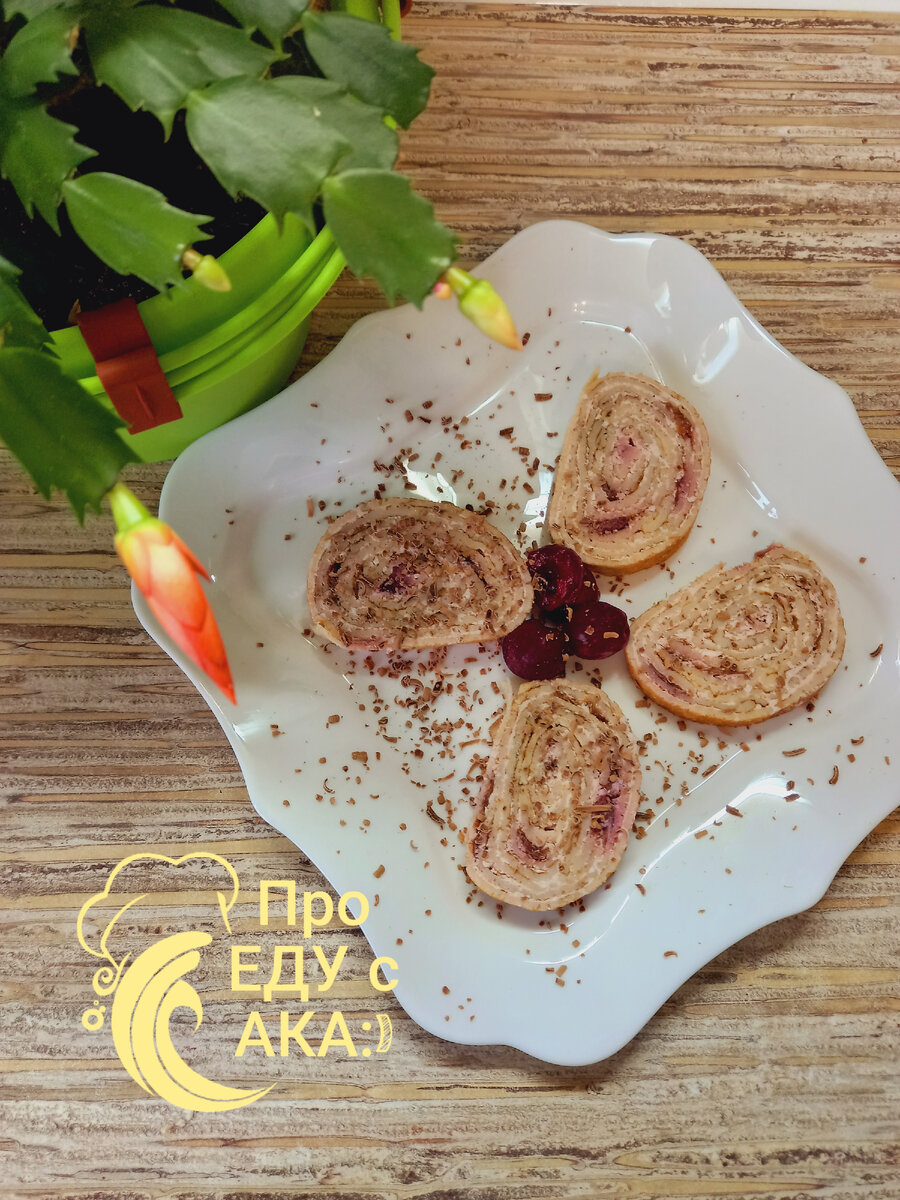 Добрый день, дорогие подписчики и гости канала! Рада общению с Вами! 🍒🍒🍒 Вот и подходит к концу масленичная неделя, а это значит, что все уже наелись блинов и блинчиков в различных вариациях и пора готовить мой любимый десерт. Я всегда готовлю "тройную" порцию - уж очень нравится это блюдо всем домашним и гостям. Нежнейшие рулетики с приятным, ванильно-сливочным вкусом так и просятся в рот! При этом, десерт не сильно сладкий-чувствуется легкая кислинка от вишни. Многие гости и не догадываются, что основа блюда - блинчики. Для того, чтобы рулетики получились нежными и воздушными есть пара хитростей, о которых я расскажу чуть позже 😊 Состав: Блинчики: Для начинки: Приготовление: 1) Готовим блинчики- выкладываю свой любимый рецепт. По нему блинчики долго хранятся, имеют нежную текстуру и отлично подходят для "заворачивания". В емкости взбиваем миксером яйца с солью и сахаром до 1-2 минуты. Вливаем к яйцам стакан кипятка и стакан холодного молока, не прекращая взб