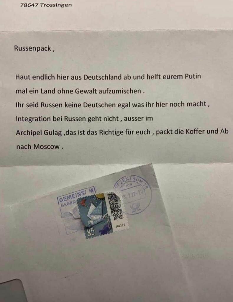 Журналист Марина Гатцемайер рассказывает о том, что знает не понаслышке (живет в Германии уже много лет): "Всем добрый день! Такой вопрос, сейчас одного знакомого во Франкфурте уволили с работы и сказали за 48 часов покинуть страну. У него жена и дочь. 11 лет живут в Германии. Есть какая-то информация, как в текущей ситуации быть?" Уже несколько дней идет травля русских в Германии. Группы русских по Германии завалены подобными сообщениями. Травят детей в школах. Увольняют с работы. Сегодня утром разбили автобус, принадлежавший выходцу из России, вчера - русский магазин. Русским приходят письма с угрозами. Их бизнес вытравляют. Ничего не напоминает? Скоро мы тут получим нашивки с желтой или красной звездой? Евреям - приготовиться! Немцы более 70 лет копили ненависть. Возможность не упустят. Фашистские шавки, которые еще вчера не имели понятия о том, что такое украина. Шавки, которые еще вчера думали, что это где-то в степях. Сегодня они все стали экспертами по стране 404. Многолетняя ан