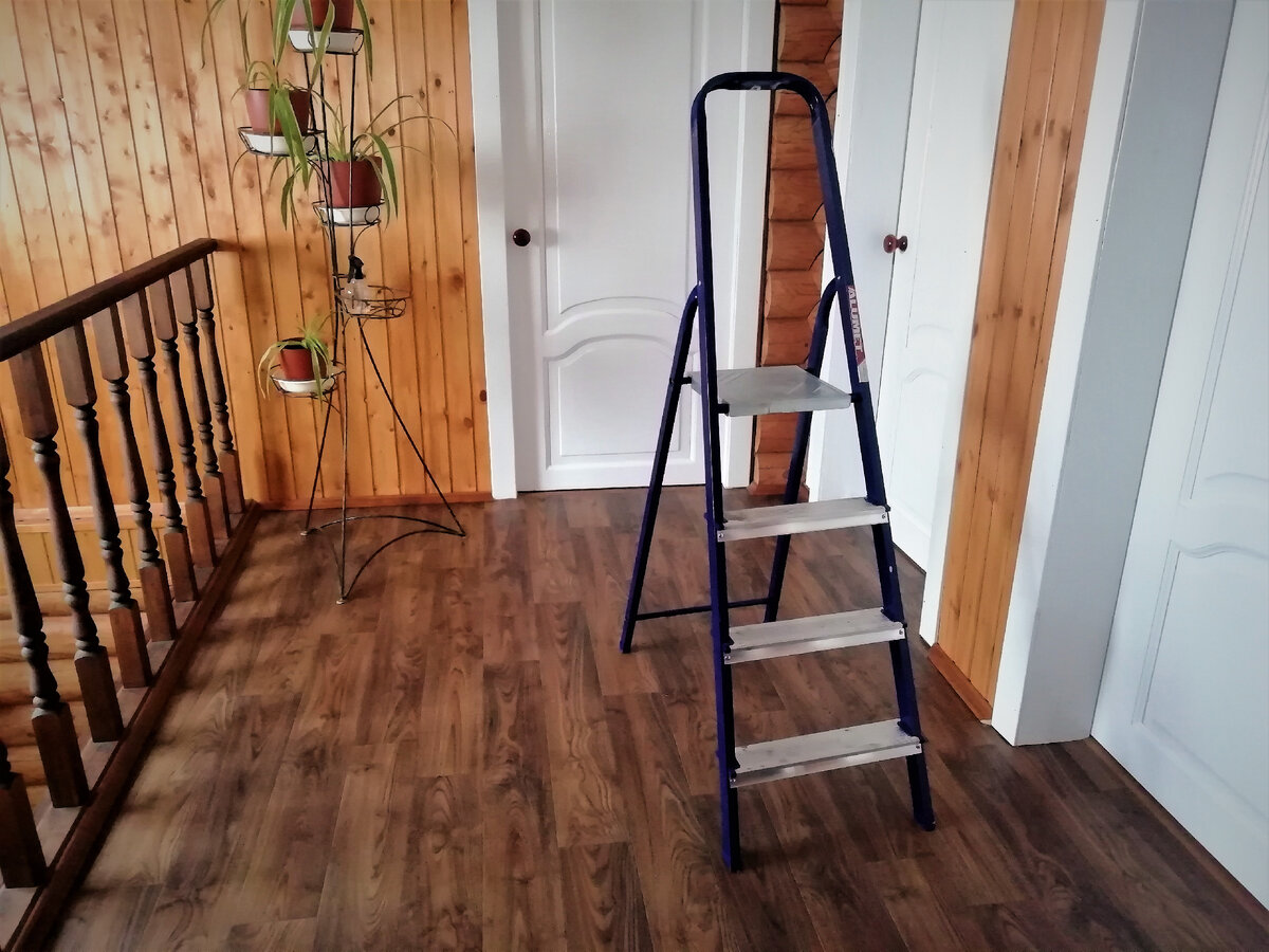 Маленькая стремянка и правда незаменимая вещь не только при ремонте, но и при решении постоянных бытовых задач. Сейчас я удивляюсь, как раньше обходилась без такого отличного помощника на четыре ступени. Уже много лет у нас имеется большая стремянка на восемь ступеней. Мы её использовали во время отделки дома, покраски террасы, во время генеральной уборки мне тоже приходилось использовать именно её. На первом этаже у нас высокие потолки, т.к. я небольшого роста, то для того, чтобы поменять лампочку самой без участия мужа, мне приходилось нести большую стремянку из гаража. Тоже самое приходилось делать во время мытья бревенчатых стен или снятия штор для стирки. Несколько лет назад у меня был такой период, когда мне пришлось подрабатывать, убирая трехкомнатную квартиру одной женщины. Вот там я и попробовала впервые во время уборки использовать небольшую стремянку на три ступени. Даже не знаю, как я раньше до этого сама не догадалась, ведь я видела в продаже такие небольшие стремянки. Оче