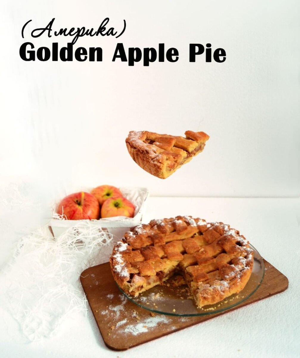 Ловите шикарный ароматный и очень простой в исполнении американский пирог! Golden Apple Pie 🍎🍎🍎🍎🍎🍎🍎🍎🍎🍎🍎🍎 🍘Тесто: 2 1/2 стакана универсальной муки, плюс еще для присыпкиэ 1/4 стакана сахара 1 чайная ложка соли 1/4 стакана растительного масла 1 палочка холодного несоленого масла 2 яйца 🍎Начинка: 1,3 кг яблок 2/3 стакана сахара 2 столовые ложки лимонного сока 1 столовая ложка универсальной муки 1/2 чайной ложки молотой корицы 👩🍳Приготовление: 1️⃣ Приготовить начинку: очистить и нарезать яблоки. Смешать яблоки с мукой, корицей, сахаром и мукой, добавить лимонный сок. Можно немного обжарить. 2️⃣ Приготовьте тесто: смешать муку, сахар и соль. Добавить сливочное масло и перемешать, пока смесь не станет похожа на грубую муку с кусочками масла размером с горошину. Взбить 1 яйцо с 1/4 стакана ледяной воды в миске, затем добавить к к тесту. Выложите 2 листа полиэтиленовой пленки; разделите тесто между листами. Охладите около 1 час. 3️⃣ Раскатайте 1 диск теста в 12-дюймовый круг