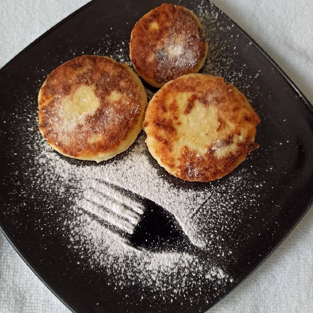 Ингредиенты: творога, яйца, сахара , муки, растительное масло для обжарки Способ приготовления: Творог выкладываем в чашу. Добавляем яйца и сахар, хорошо растираем (можно пробить блендером). Когда творожная масса стала однородной, добавляем 1-2 ложки муки. Замешиваем тесто и делим его на шарики. Каждый шарик обмакиваем в муке и формируем сырник. Это можно сделать при помощи обычного бокала. Сначала шарик немного приплющиваем, накрываем бокалом и энергично начинаем вращать бокал. В результате сырник приобретает необходимую нам форму. На сковороду наливаем немного масла и обжариваем сырники для золотистой корочки. Перед подачей можно посыпать сахарной пудрой, украсить топингом или добавить ложку варенья.