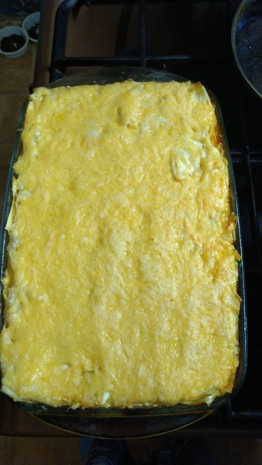 Я приготовила лазанью на ужин для семьи. Ингредиенты: Мясной фарш , Грибы шампиньоны, Листы лазаньи , Приправы смесь перцев, базилик , Соль, Паста томатная, Мука, Масло сливочное, Молоко, Сыр пармезан, Сыр Белорусский , Лук, Чеснок, Оливковое масло, Способ приготовления: Порезать лук кубиками обжарить на оливковом масле вместе с чесноком. Добавить порезанные шампиньоны обжарить. Добавить фарш мясной обжарить добавить соль специи и томатную пасту тушить 40 минут. Готовим соус Болоньез. Обжарить муку 2 ст. ложки на сковородке добавить кипяченое молоко при этом помешивать добавить, масло соль и в конце лавровый лист. Отварить до полу готовности листы лазаньи. В форму для запекания положить листы пасты потом фарш мясо с грибами. Потом лазанью и сверху соус Болоньез и так середовать. Последний слой порезать сыр пармезан, накрыть листами лазаньи и посыпать тёртым сыром и в духовку на 40 минут при температуре 180 градусов. Через сорок минут духовку выключить пусть лазанья настояться, отдохнёт