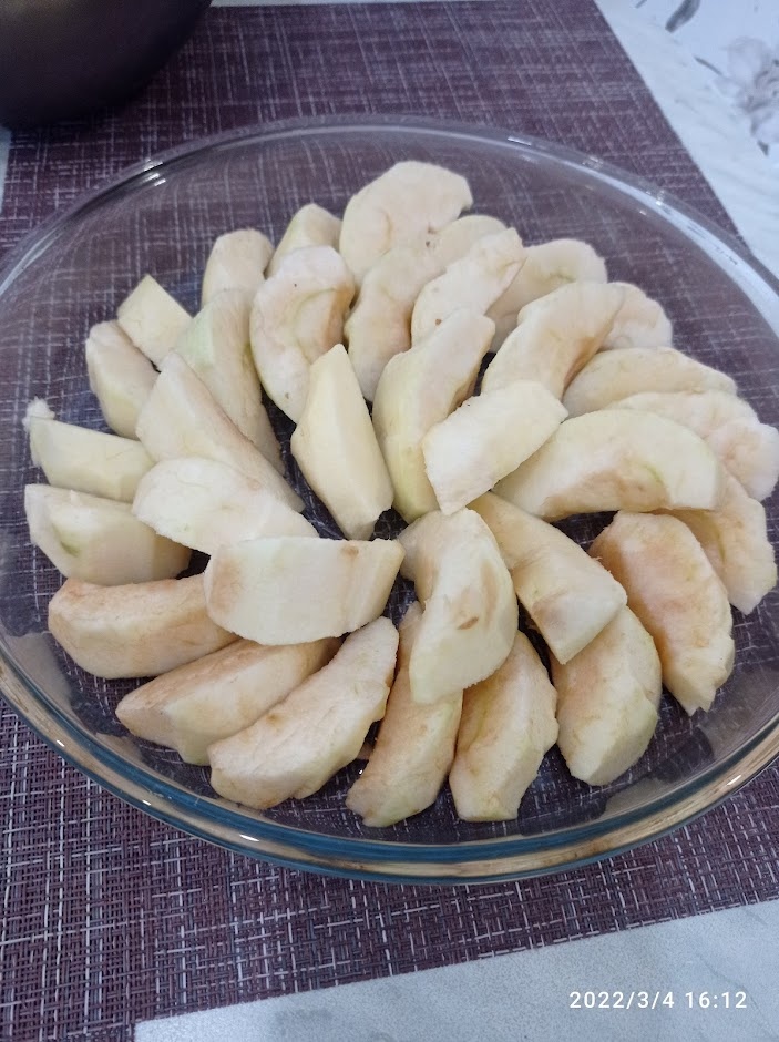 Попробовав этот пирог с яблоками, я в него просто влюбилась. Покажу как я его готовлю. Ингредиенты: Тесто: Начинка: Карамель: Приготовление: Яблоки очищаю от сердцевины и кожуры, нарезаю каждое яблоко на 8 частей. Готовлю тесто. В чашу кладу муку, яйцо, сливочное масло, соль и сахар. Перемешиваю, наливаю воду, замешиваю тесто Форму для запекания застилаю пергаментом, выкладываю нарезанные яблоки. Не берите для этого пирога раздвижную форму, карамель может вытечь. Далее варю карамель. Беру кастрюлю, сахара буду нагревать постепенно. Сначала всыпаю в кастрюлю 1-2 ст.л., постоянно помешиваю венчиком, когда сахар начнет темнеть добавляю еще 2 ст. л. , таким образом нужно растопить весь сахар, не забывая постоянно перемешивать венчиком. Когда не будет никаких комочком, и сахар станет жидким карамель убираю с плиты. Затем карамелью поливаю яблоки Теперь раскатываю тесто. Накрываю тестом яблоки. Прокалываю тесто вилкой. Ставлю в духовку на 180 градусов на 40 минут. Вот что получилось: Накры