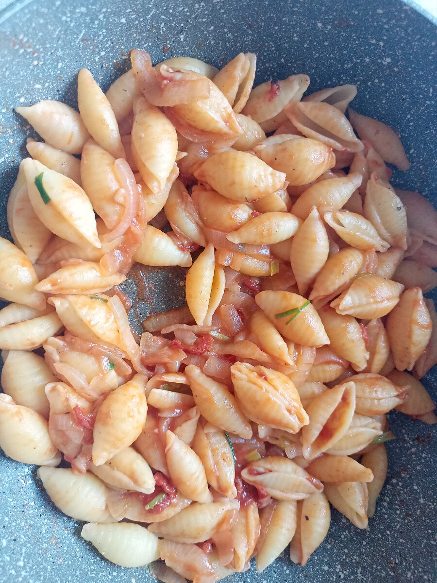 Ингредиенты: Макароны рожки Репчатый лук Помидор Перья чеснока Томатная паста Сыр Соль Перец чёрный молотый Растительное масло Способ приготовления: В магазине на полке макаронных изделий ищем макароны рожки. Нашли - отлично, а коль не нашли - идём в другой магазин, нечего в этом делать, даже макарон нету, вот. Предположим у нас упаковка с макаронами рожки на 400 грам. Ставим воду в кастрюле на огонь. Ждём, когда вода закипит. Итак, вода закипела. Высыпаем в кастрюлю с водой половина пачки макарон рожки. Солим. Вода с макаронами закипает, переключаем огонь на средний и варим макарошки 15 минут постоянно их помешивая. Прошло 15 минут, сливаем макарошки в дуршлаг и даём им стечь. Теперь ставим на огонь сковороду, на сильный огонь. Наливаем растительное масло в сковороду. Берём два репчатых лука, разрезаем на-половину. И каждую половину разрезаем еще на-половину. Ну а теперь нарезаем лук. Нарезали, положили в сковороду. Начинаем обжаривать репчатый лук, постоянно его помешивая. Перек