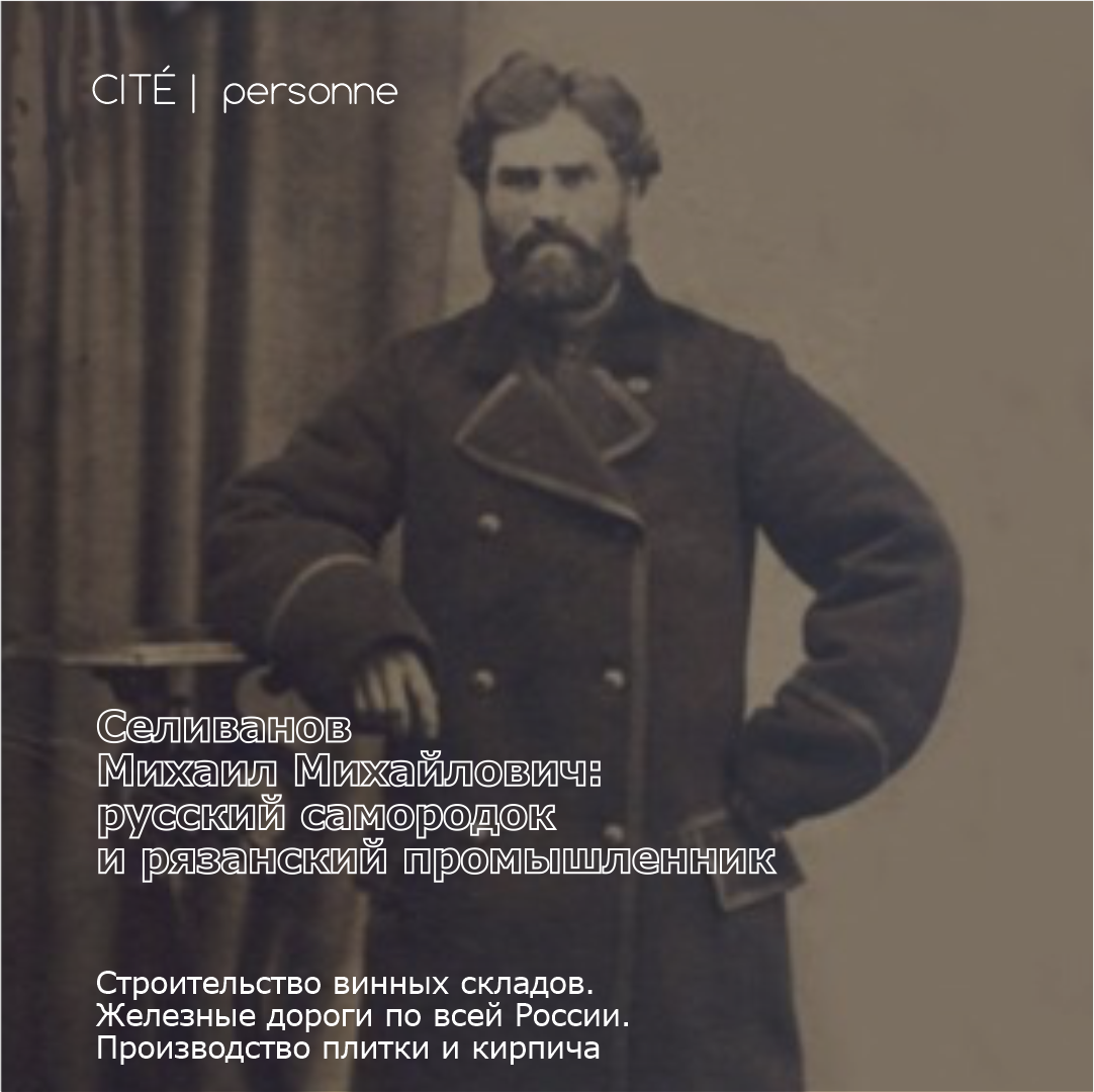 Мы в редакции CITÉ REVUE хотим, чтобы о Рязани знали в других странах и городах не по фразе про грибы, которую притянули к туристическому бренду нашего города, не по единственному Есенину, который не имел отношения к Рязани, а знали по личностям, которые действительно преображали и строили город, оказывали влияние на развитие губернии и были известны своими благими делами на всю Российскую империю. Сегодняшняя публикация посвящена Михаилу Михайловичу Селиванову — рязанскому купцу первой гильдии, промышленнику и «русскому самородку», который строил железные дороги по всей России: Ржев — Вязьма, Разуваевка — Сызрань, Пермь — Котлас, Раненбург — Лебедянь, Рязань — Казань. Михаил Михайлович возводил императорский зверинец в Гатчине, оросительные системы под Царицыном, бойню и водопровод в Москве, вел мелиоративные работы в Московской, Рязанской и Владимирской губерниях, а также занимался строительством общественных зданий в Рязани, Касимове и Ряжске. Подробнее о личности рязанского купца