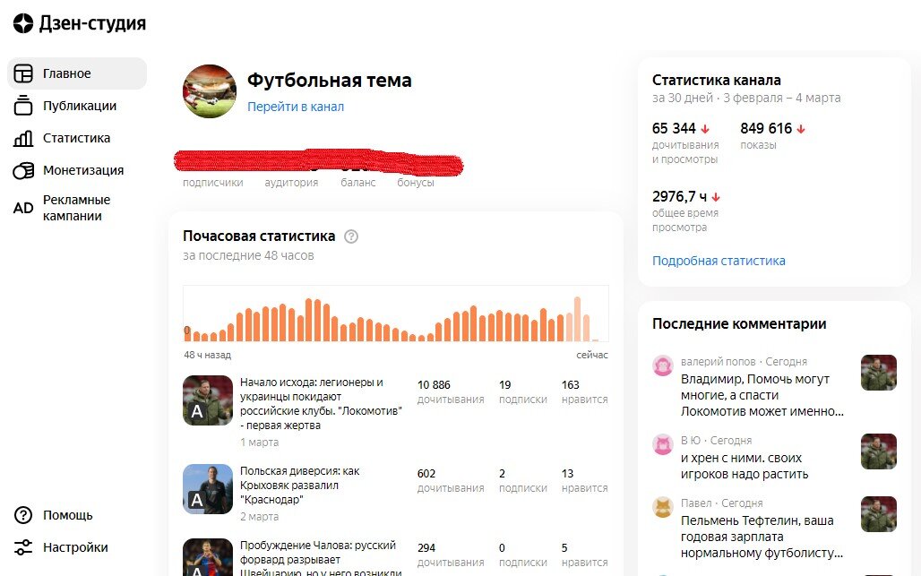 Решил немного представить свой канал в связи с некоторыми событиями на платформе Дзен (о них ниже). Канал "Футбольная тема" посвящен отечественному футболу. Здесь описываются все события связанные с национальной сборной России, с клубами РПЛ, всеми 16, без каких-либо предпочтений. Также обзор и аналитика матчей этих команд в чемпионате и Кубке России, еврокубках, выступлений российских футболистов-легионеров за рубежом, событий футбола ближнего зарубежья, постсоветских стран. К сожалению, из-за нехватки времени, нет возможности освещать комплексно события в лигах ФНЛ и ФНЛ-2, хотя региональному футболу и самым актуальным событиям, связанным с ним, по возможности, стараюсь уделять внимание. В данном канале стараюсь максимально широко охватывать все самые актуальные и животрепещущие темы нашего футбола. В настоящее время на канале можно найти публикации, касающиеся текущих политических событий и их влияния на отечественный футбол - здесь стремлюсь комплексно осветить и охватить все пр