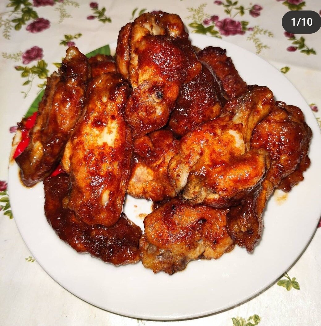 Очень, очень вкусное блюдо. Особенно нравиться детям. Ингредиенты: Куриные крылья. Мука - 3 ст. ложки. Слив. масло - 30 гр. Кетчуп - 2 ст. ложки. Соевый соус - 30 мл. Кока-кола - 200 мл. У крылышек отрезаем кончики и делим оставшуюся часть напополам. Обваливаем в подсоленной муке. Смазываем маслом противень и выкладываем на него крылья. Запекаем в духовке 40 минут на температуре 180 гр. Пока крылья запекаются, делаем соус. В сковороде растапливаем сливочное масло, добавляем туда кетчуп, соевый и колу. Увариваем на медленном огне 15-20 минут, изредка помешивая. Соус должен получиться вязким и слегка густым. Приготовленные крылья перемешиваем с соусом. Попробуйте как нибудь такое блюдо. Это очень вкусно!