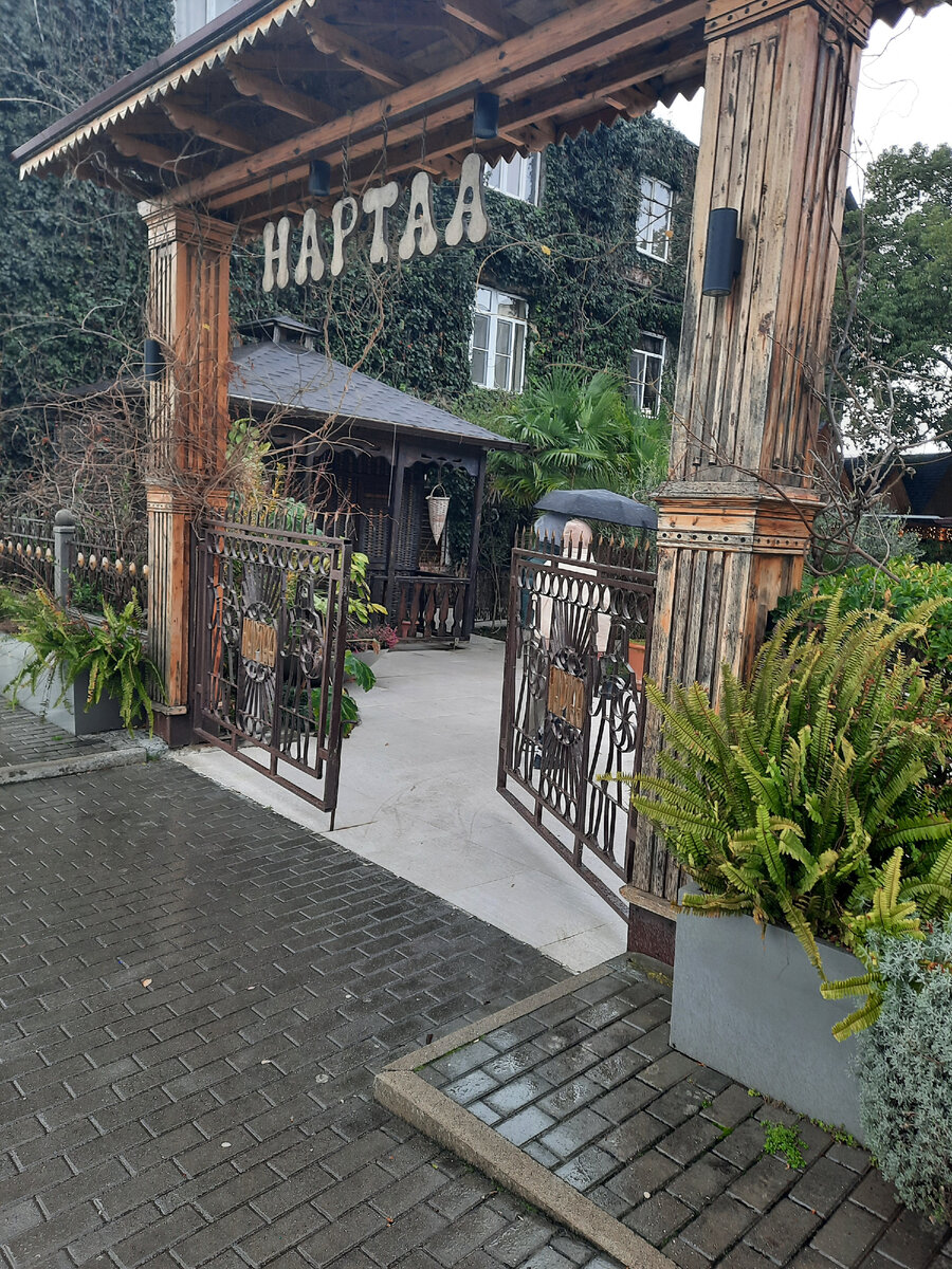 Ну все мои подписчики знают, что это знаменитое кафе в Сухуме. Они меня туда и направили. Я сильно сопротивляться не стала, и в один прекрасный день отправилась туда покушать. А почему бы и нет? Ведь больше отзывов в интернете, чем о кафе "Нартаа" я не читала. Тем более, я понимала, что я приехала не просто в несезон, а несезон, несезон., поэтому в этом заведении ни очередей, ни аншлагов в это время не бывает, просто иди в любое время и кушай, тебя там очень ждут. Но ждали меня там не особо, потому что на второй этаж не пустили, сказали, что там холодно. Предложили разместиться в кабинке. А я в принципе ничего против не имела. Мы разместились с Гришкой и стали ждать меню, которое обещали принести. Через пять минут я поняла, что про нас забыли, и решила крикнуть первую проходящую официантку, звали её Оксана. И вот с этого момента все закружилось вокруг нас. Нам объяснили, что где в меню, и что заказать, если мы здесь в первый раз. Ну и заказали мы конечно лодочки и горячий чай, пот