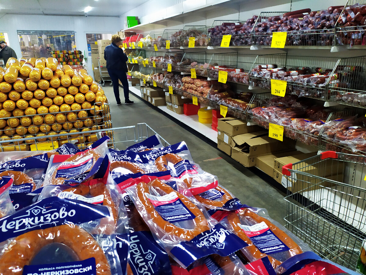 В вакуумной упаковке сервелат ГОСТ из Волгограда. Цена 308 рублей за 1 кг.