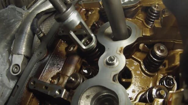 - Убирают толкатели кранов, затем демонтируют постель распредвала с ГБЦ.