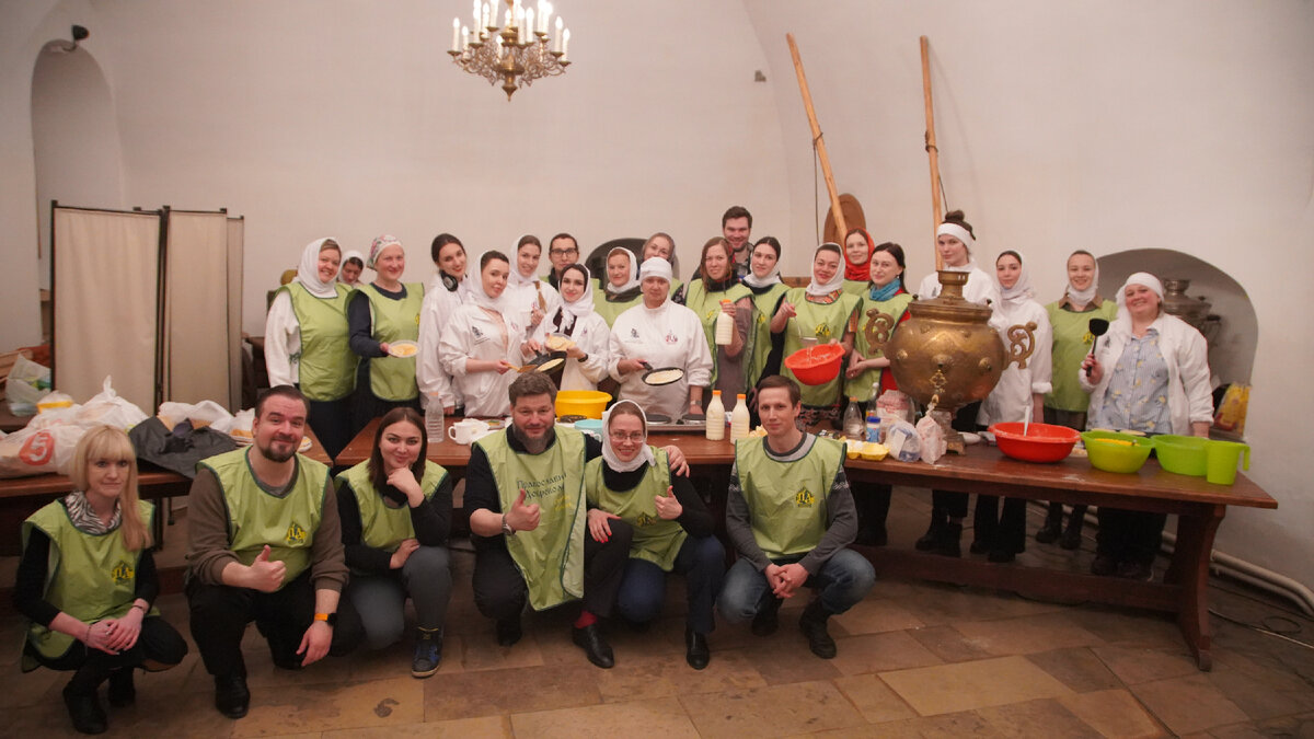 Волонтёры из кинокомпании «Союз Маринс Групп» вместе с «Патриаршими добровольцами» напекли блинов и угостили ими нуждающихся
