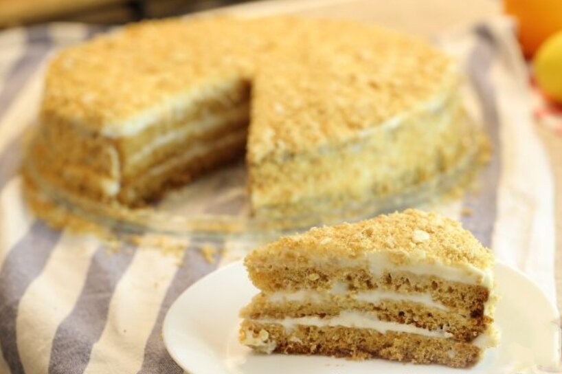 Сегодня предлагаем вам простой рецепт торта "Медовик". Торт получается с ярким медовым вкусом, но в отличие от классического не требует раскатки коржей. "Ленивый" медовик готовится быстро, просто, получается мягким и пропитанным. Тесто замешивается минут 15. Печётся тоже очень быстро. Обязательно попробуйте приготовить! Продукты Для теста:Яйца - 2 шт.Сахар - 3 ст. л.Мёд жидкий - 3 с т. л.Сода пищевая - 1 дес. ложкаМука - 1,5-2 стакана*Для крема:Сметана жирностью 24-25% - 600 г Сахарная пудра - 0,5 стакана Начнём с приготовления теста. Смешиваем яйца с сахаром. Взбиваем с помощью миксера до светлой воздушной массы. Добавляем жидкий мед, перемешиваем В просеянную муку добавляем соду. Добавляем муку в яично - медовую массу, перемешиваем ложкой до однородности - и тесто готово. Выливаем тесто в форму, покрытую пергаментом. Выпекаем в разогретой духовке при температуре 180 градусов 15-20 минут. Пока печется медовик, готовим сметанный крем: взбиваем сметану и сахарную пудру. Медовый бисквит