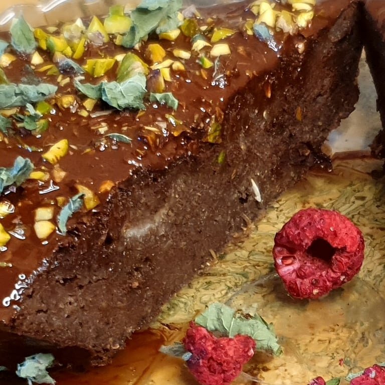 ✅Капли с маслом растопить на водяной бане, полить сверху брауни, посыпать орехами или ягодами