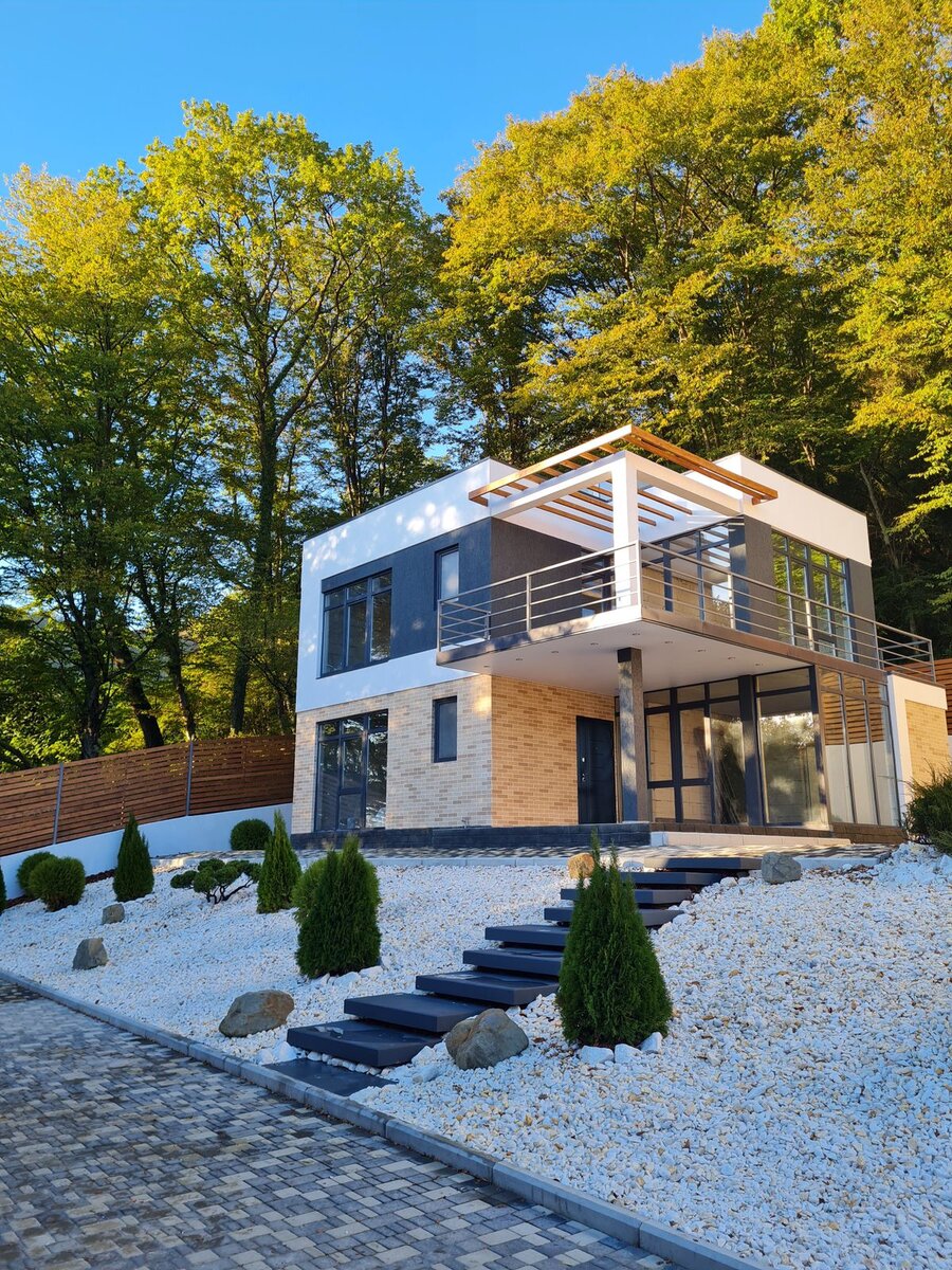 Дом площадью 170 кв.м., на участке 4,3 сотки. Расстояние до моря 2.5 км по асфальтной дороге. Школа и садик в двух км от дома. Дом без отделки. Эксплуатируемая крыша!