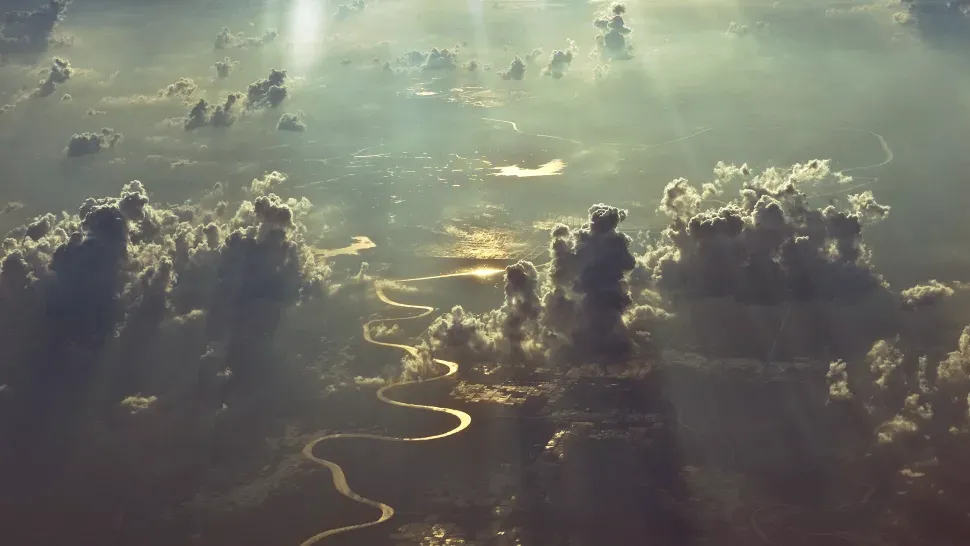 Верхнее изображение: В этом изображении с воздуха река Муси блестит золотом (Кредит изображения: Rio Helmi/LightRocket через Getty Images)