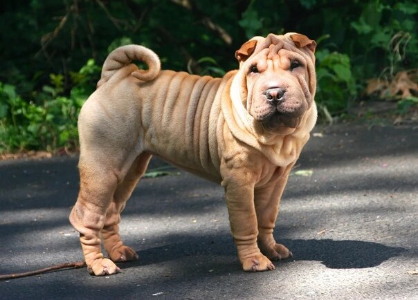 Шарпеи – представители древней китайской породы. Раньше эти собаки выполняли роль охотников и сторожей, а сегодня являются домашними любимцами и отличными компаньонами. Характерными чертами породы являются ярко выраженные кожные складки (обусловленные специфической мутацией определенного гена), а также сине-черный язык. Окрас классических шарпеев значительно варьируется, оставаясь при этом в черной гамме. У дельютных типов (лишенных черного пигмента) – лавандовый язык, а шерсть имеет окрас различных светлых тонов (шоколадный, абрикосовый, красный, лиловый, кремовый, а также некоторые другие). Иногда на мордочке животного есть черная маска – таким причудливым образом проявляются особенности окраса у представителей этой китайской породы. Характер у этих питомцев спокойный, взрослых собак отличает преданность семье и недоверие к незнакомцам. Щенков необходимо социализировать и дрессировать, чтобы предупредить агрессивное поведение по отношению к другим собакам, например, во время прогулки