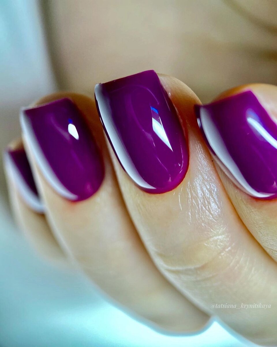 Баклажановый маникюр смотрится благородно и привлекательно. Этот темный оттенок смотрится красиво и в чистом виде, и с разным декором. Понравились работы?