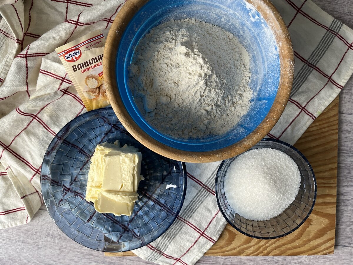 - по желанию можете добавить ваниль После подготовки ингридиентов Вам нужно их перемешать. Начинаем со сливочного масла (нужно,чтобы оно было мягкое, комнатной температуры) и добавляем к нему сахар. Можно перетереть сахар и масло с помощью венчика или миксера. Следующим шагом будет добавление просеянной муки и ванили.