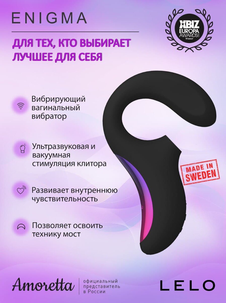 Lelo Enigma - премиальный вакуумно-волновой стимулятор клитора от шведской компании Lelo. Особенность игрушки - это воздействие на клитор не просто вакуумом, а ультразвуковыми волнами. Эта технология запатентована компанией Lelo и называется Sеnsonic (Сенсоник). Для всех ультразвуковых моделей Lelo был разработан специальный тип силикона, который поглощает звуковые волны и передает их обратно в клитор. За счет этого вакуумный вибратор Enigma способен возбуждать на 75% больше площади клитора, чем какой-либо другой бесконтактный стимулятор. Секс-игрушка не вызывает раздражений на коже, так как не вступает в непосредственный контакт с клитором, а накрывает его сверху «колпачком». Ваша чувствительность после оргазма останется прежней и вам не придётся делать перерыв и отдыхать от стимуляции, вы без труда сможете испытывать множественные оргазмы. Lelo Enigma предлагает 8 режимов интенсивности и удобно управляется с помощью кнопок, эргономично расположенных точь-в-точь под пальцами. Игрушк