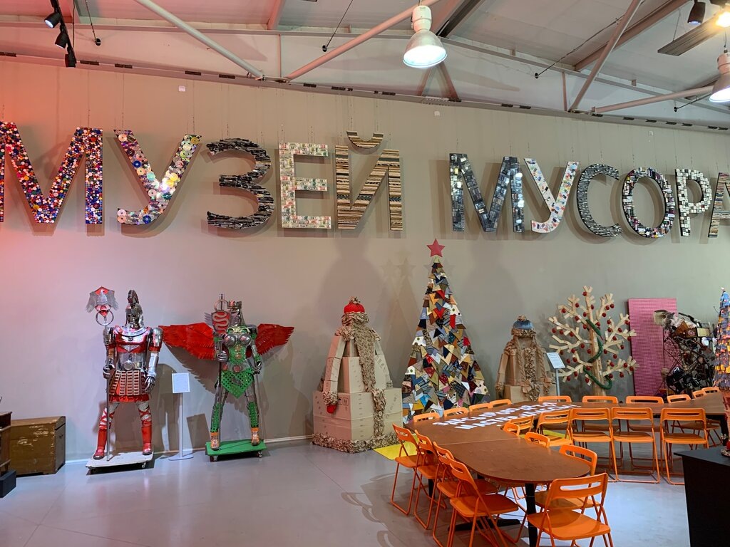 Как и обещала вам, подробнее расскажу о посещении музея Мусора, который находится в Калужской области на границе с Москвой. В выходные праздничные дни с нас взяли 700рублей за 2 билета, но оно того стоит. Всю дорогу к музею муж подчутивал над моим выбором и не верил, что будет что-то интересное, а что мы едем в другую область смотреть на кучу мусора 😃 Кстати Калужская область одна из моих любимых для путешествия, так как там просто гигантское количество очень интересных мест. И каждый раз находим что-то новое. Только входишь в музей, сразу понимаешь, что приехал не зря. Кстати требуется наличие маски😷 Помещение средних размеров и состоит из двух этажей. На втором есть несколько дизайнерских комнат, кстати детям предлагается спуститься вниз с горки на вязанном коврике. Экспонаты очень интересные и оригинальные. И они продолжают пополняться. Вы также сможете внести свой вклад в искусство и привезти крышечки от пластиковых бутылок. Очень понравилась комната обмана восприятия. Реально мо