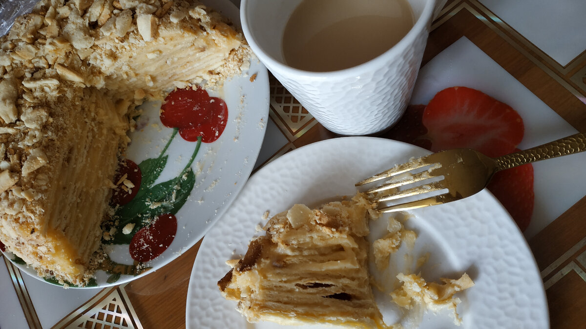 Как доказать мужу, что магазинные торты не вкусные 🤷 наверное просто 😀 научиться готовить вкуснее 😋 Именно с чувством женщины-победителя и доставщицей оргазма вкусовым рецепторам, я обычно иду на кухню. Включаю интернет и зависаю в поиске нормальный рецептов. Ключевое слово "нормальных". Для меня нормальные это те, в рецепте, которых есть все подручные продукты из моего холодильника 😊 Перелопатив пару десятков, можно найти один, два достойных 👍 а можно просто испортить продукты. Мой кулинарный опыт и внутренняя чуйка обычно ограждают меня от рецептов с дрожжами 😐 ну как бы "не мое" и от тех десертов, которые не люблю. А почему не люблю? Все просто, мне не вкусно 🤮 жирно, сладко. Фу, кто этих кулинаров учил калькуляции продуктов, большинство десертов приторные. Но я то сумею вкусно, по домашнему и с любовью ❤️ Наполеон ☹️ ненавижу с детства. Помню как на детском дне рождения нам подали этот торт. И я на всю жизнь запомнила этот вкус и больше ни когда не хотела его почувствовать с
