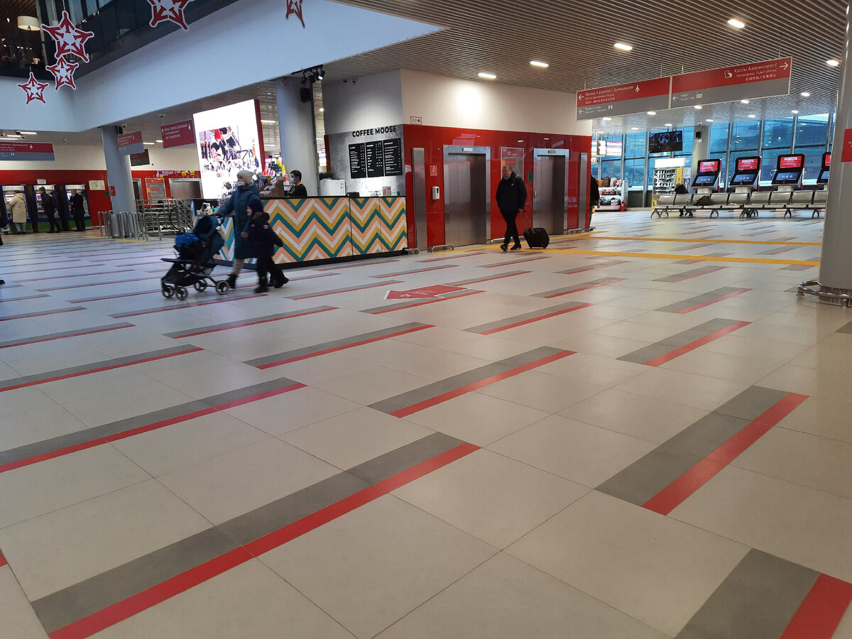 Раньше, чтобы попасть в здание аэропорта, нужно было идти через улицу по невзрачной дорожке. Теперь прямо с платформы заходим в помещение терминала. И снова счастье! Нет досмотра.