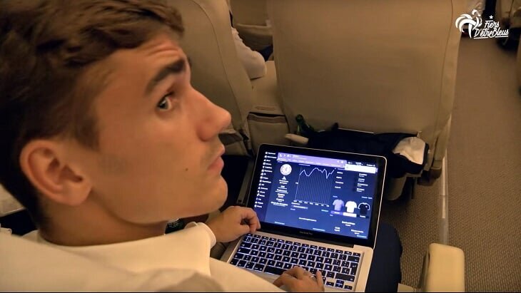 Антуан #Гризман вообще заядлый игроман и очень много играет в игры, связанные с футболом. Например в сети можно найти очень много фотографий, как француз залипает в Football Manager. Кто играл в FM, тот знает, как быстро летят часы, когда вы выбираете тактики и ищете новых игроков в свой клуб.