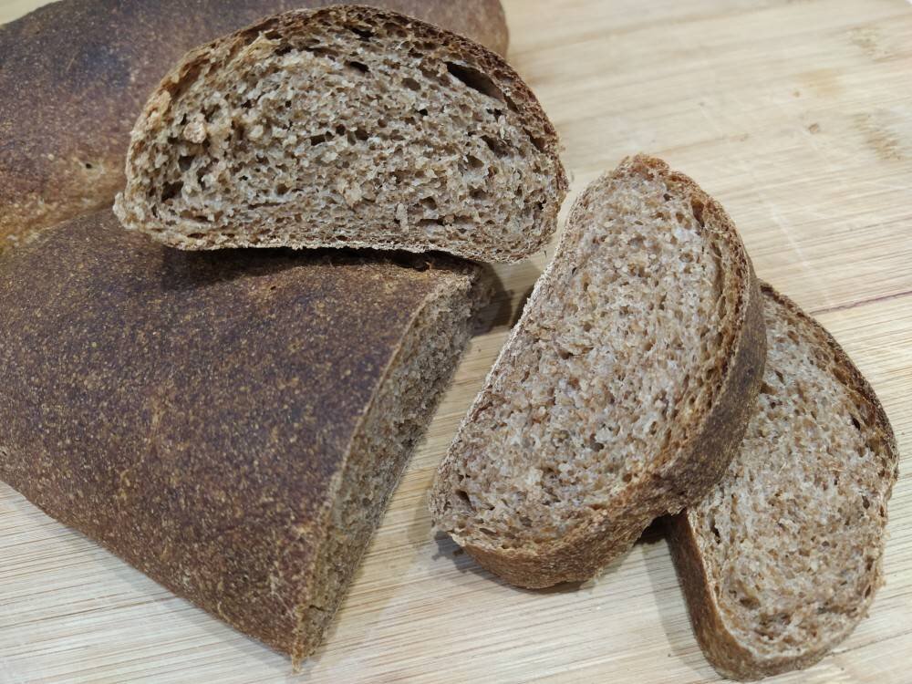 #меню Мягкие, нежные и ароматные. Можно сформовать небольшими булочками. #Приятногоаппетита #Хлебназакваске Ингредиенты: Заварка:, отрубей, кипятка, Опара:, ржаной закваски 100% гидротации (стартер), пшеничной муки, воды, Тесто:, пшеничной цельнозерновой муки, сахара, оливкового масла, соли, воды Способ приготовления: Заварка: Отруби прокалить на сухой сковороде до орехового аромата. Залить кипятком и перемешать. Накрыть крышкой или пленкой, чтоб влага не испарялась. Опара: В миске смешать закваску, воду и муку до однородности. Накрыть пленкой и оставить бродить на 3 часа. Тесто: В опару добавить заварку, сахар, масло и 200 гр муки. Перемешать до однородности. Затем вмешать соль и воду, замешать упругое, но не тугое тесто. Если тесто слабое, добавить остатки муки. Тесто переложить в миску, накрыть пленкой и оставить бродить на 2 часа. Через час после начала брожения сделать одну обминку. Тесто выложить на рабочую поверхность припыленную мукой. Разделить на три равные части. Удобным для