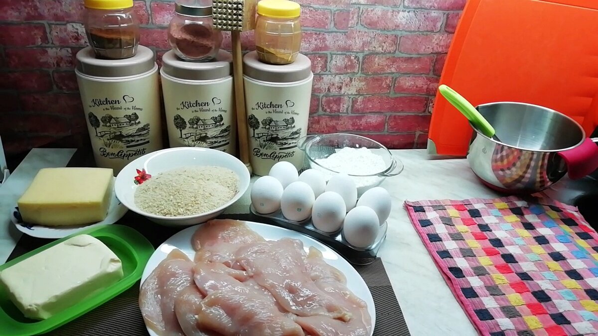 Очень сочные и вкусные котлетки,сегодня решила побаловать свою семью ароматными котлетками по-киевски,мы их очень любим. Нам понадобится : Куриное филе - 4 шт. Масло сливочное - 100 гр. Сыр - 300 гр. Панировочные сухари. Яйца - 1 дес. Может больше. Мука - 200 гр. Специи по вкусу. Подготавливаем все ингредиенты. Нарезаем филешку пластами,убрав с мяса всё лишнее. Из одной филешки я делаю три-четыре заготовки на котлетки. Складываем всё в тарелку. Смешиваем специи,у меня это смесь душистых перцев, паприка, орехово-чесночная приправа для курицы, соль. На разделочную доску кладём полиэтиленовый пакет, на него пласт филешки и накрываем второй половиной пакета. Отбиваем, солим перчим с двух сторон. И так с каждой филешкой. Я сворачиваю все готовые филешки рулетиком. Накрываю рулетики пищевой плёнкой и убираю в холодильник, на час, пускай мяско промаринуется. Сыр натираем на крупной тёрке. Добавляем к сыру размягчённое сливочное масло,всё хорошенько перемешиваем. Делаем из сыра и