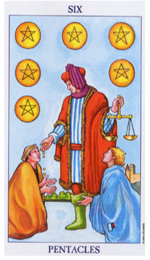 Мы уже выяснили, что Шестерка Пентаклей нам говорит о том, что наконец мы оттолкнулись от самого дня кризиса. Удивительным образом нам удалось получить помощь и поддержку, которая стремительно выталкивает нас наверх. Теперь уже не так страшно и одиноко, теперь появилась надежда, теперь можно немного расслабиться и успокоиться.