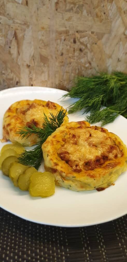 Честно скажу, беру всё "на глаз", но напишу примерные объёмы) Ингредиенты: картофеля, фарша, луковица, Сливочное масло, муки, яйца, сыра, томат.пасты, Укроп, петрушка, Прованские травы, перец, Соль Способ приготовления: Картофель отварить в подсоленной воде, воду слить. ⚡Кстати, воду от варки картофеля можно использовать при замесе дрожжевого теста или для блинчиков.⚡ Размять картофель в пюре, добавив кусочек сливочного масла. Остудить до тёплого состояния, добавить яйца, муку (ложки 4 столовых (может, чуть больше), смотреть, чтоб масса хорошо лепилась). Посыпать мелко порубленной зеленью добавить прованские травы, перец, тщательно вымесить. Попробовать на соль. Если не хватает - досолить. В сковороде растопить кусочек сливочного масла, обжарить мелко порезанную луковицу до золотистого цвета, добавить фарш, обжаривать до готовности, положить.томат.пасту, потушить ещё немного, посолить и поперчить, можно добавить зелень. На противень выложить лепёшки из картофеля. У меня вышло 20 штук