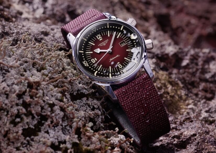 Песочный, пепельный, синий и оттенок вина - насыщенные цвета новинок Коллекция ретро-дайверов с градиентными циферблатами от Longines пополнилась часами в новых оттенках. Теперь в серии Legend Diver, дебютировавшей в 2007 году, можно найти часы песочно-бежевого, пепельно-серого, ярко-синего и насыщенно-винного. Расширилась не только палитра цветов: новые часы семейства Longines Legend Diver доступны в корпусах разных размеров. Помимо классической модели с корпусом 42 мм, компания Longines выпустила часы в корпусе 36 мм. 42-миллиметровые новинки с текстильным ремешком в тон циферблату представлены с циферблатами бежевого и серого цвета. Версия модели в корпусе 36 мм также представлена в оттенке бордо и с песочно-бежевым циферблатом. Помимо этого в коллекцию входит модель с циферблатом синего цвета, оснащенная кожаным ремешком. Завинчивающаяся задняя крышка часов украшена изображением дайвера, а водонепроницаемость дайверских новинок составляет 300 метров. Новые Longines Legend Diver осн