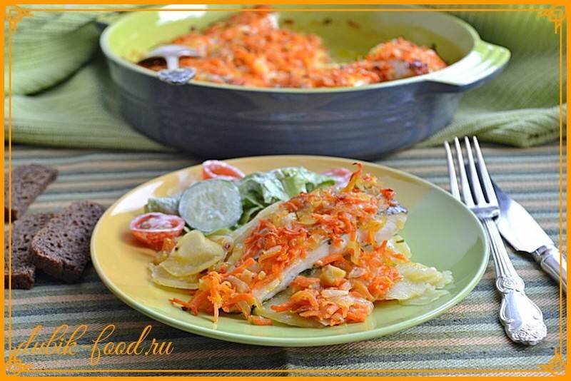 Рыба - это всегда вкусно и полезно, тем более, если блюдо запекается в духовке. А если речь идет о судаке, то это вдвойне вкусно! Судак – рыбка на все случаи жизни. Из него можно приготовить вкуснейший суп, котлеты, заливное или подать под соусом. Судак, приготовленный с овощами, прекрасно подходит для полноценного второго блюда к обеду или к сытному ужину. Ингредиенты: филе судака, крупных картофелин, большие моркови, средние луковицы, чеснока, укроп, соль, перец , растительное масло Способ приготовления: Рыбку помыть, нарезать порционными кусочками. Посолить, поперчить и оставить на 15 минут. Лук и морковь почистить. Лук мелко порезать, морковь натереть на средней терке. Обжарить на масле, добавив измельченный чеснок. Картошку почистить и нарезать тонкими кружочками (слайсами). В форму для запекания добавить 3 столовые ложки воды. Положить картофель слоями, каждый слой посолить. Посыпать картофель измельченным укропом. Выложить поверх картошки кусочки судака. Выложить морковь с луком