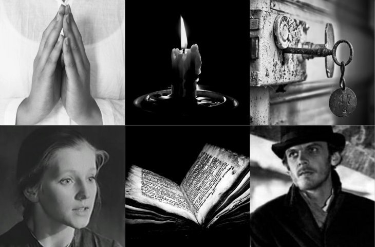 По просьбе Раскольникова она читает «старую, подержанную» книгу – Лизаветино Евангелие. Какой глубокий смысл вкладывает автор в этот момент! Его первый шаг к душевному возрождению начинается со слов Бога, к которым, как мы видим, часто обращалась убитая им невинная Лизавета. Символичности этой сцене прибавляет и горящая во тьме свеча, которая в православии изображает Христа и дарует благодать Божью.