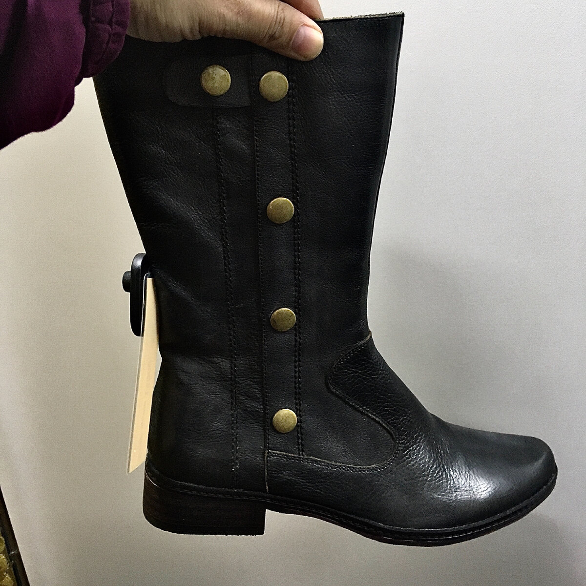 Сегодня новое поступление, немного расстроилась, увидев цены, доллар перешагнул рубеж за сотню, соответственно стоимость обуви в секонде скаканула до 1500р. За 1500р предлагают новую обувь, чуть с износом пока также по 500-750р Новые демисезонные сапоги за 1500р 39 размера из натуральной кожи темно-серого цвета с узким мысом абсолютно новые, итальянского производства Fruit Высокие сапоги из нубука 39 размера за 1000р в отличном состоянии Очень понравились зимние на цигейке финские сапоги за 1000р 37 размера с квадратным мысом из плотной лощённой натуральной кожи Ботинки зимние на цигейке из нубука 38 размера за 750р Ботинки из натуральной кожи и дублёнки в верхней части за 1000р 37 размера И о, Боже!! Какие роскошные сапоги!! О них я расскажу подробнее. Итак, высокие демисезонные ботинки на шнуровке за 1500р 36 размера совсем новые белорусского производства. Кожа, держащая форму, чёрного цвета, изумительного качества. А как великолепно смотрятся на ножке. Вот они на сайте Не