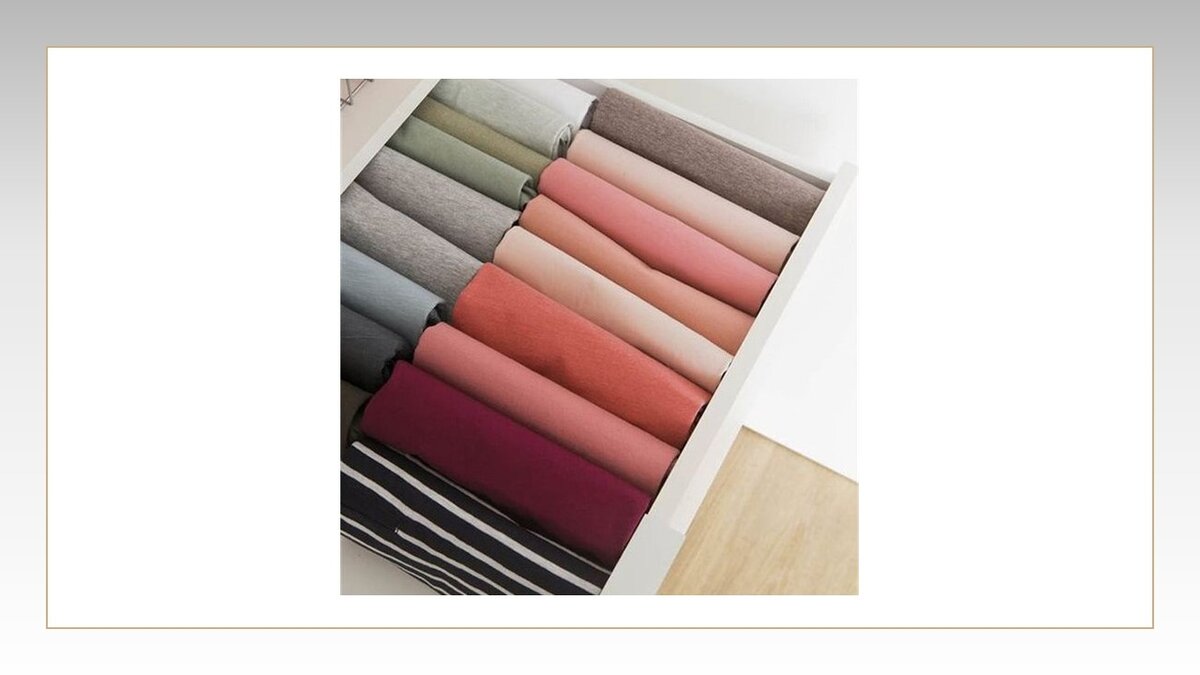 ☺вертикально сложенные вещи занимают на 40% меньше места, чем при хранении в стопках.