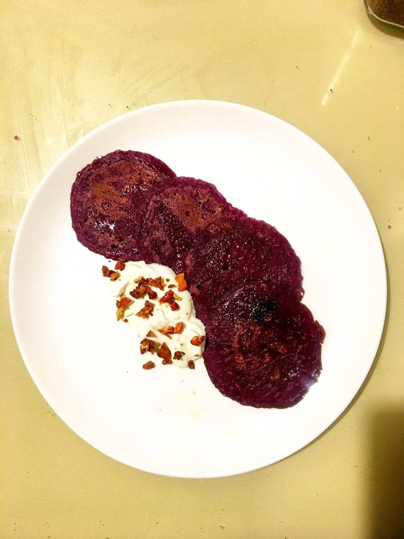 К Масленице оставить рецепт Блинов еле успела. Хотя завтра это будет уже не актуально, все же предлагаю идею использования ягодного сока. У меня при размораживании черники остался стакан густого черничного сока, который для выпечки уже был лишним. Я замешала на нем тест и выпекла тоненькие блины потрясающего цвета с ягодным вкусом. #масленица #выпечка #блины #ягоды #черника #выпечкасягодами #удивитьгостей #блинчики #креатив #завтрак #завтраки Ингредиенты: ягодного сока после разморозки, Вода, сахара, яйца, соли, Мука - сколько потребуется для тонких Блинов. Тесто должно быть как жидкая сметана Способ приготовления: Замесить тесто на ягодном соке и воде, добавив яйца, соль, сахар и муку, сколько потребуется. Взбить миксером. На раскалённую сковороду налить подсолнечное масло, нагреть его и жарить блинчики с обеих сторон как обычные. Можно лепешками, а можно большими - во всю сковородку. Они очень легко переворачиваются. Подавать со сметаной, мёдом, разными топингами.