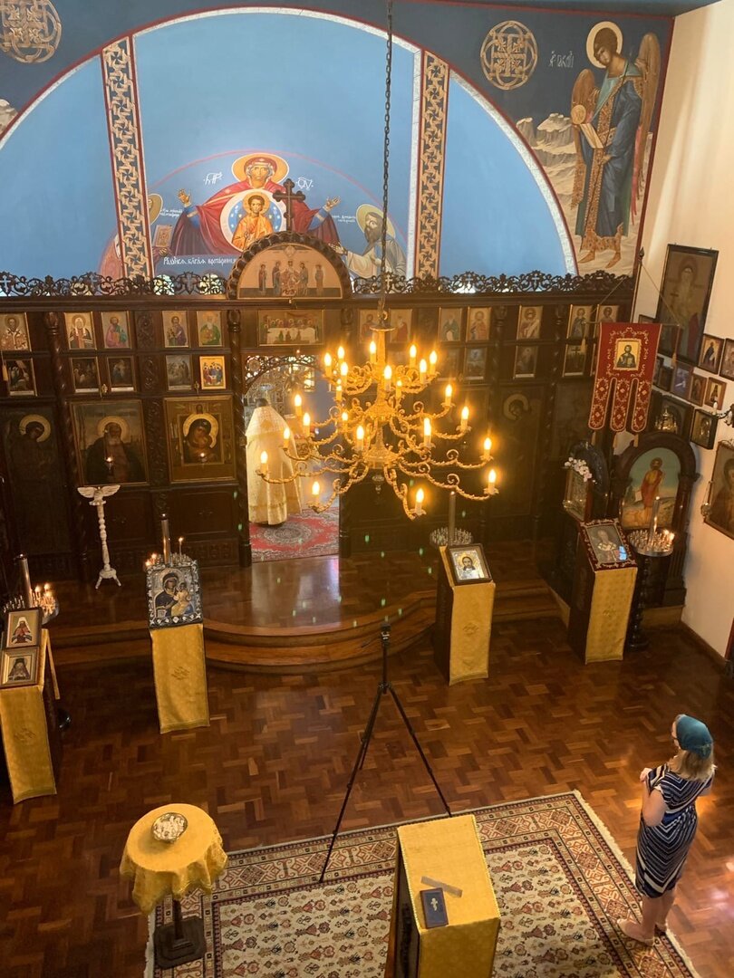 Пишу, а у нас косой ливень заливает веранду. Давно не было дождей, интересно посмотреть, как поведет себя земля на холме. Пока все нормально, разрушений не наблюдаю. А теперь к новостям. Во-первых, поздравляю всех православных с началом Великого Поста. Сейчас вера для многих может стать настоящей опорой. В храме сегодня было много народу. Увиделись с Соней. Говорит, закончила ремонт в своей квартире в Сан-Паулу и теперь хочет позвать нас в гости. Приготовила подарок для Кати, своей крестницы. Девчонки сидят после службы едят просфорки. Очень голодные, выезжаем рано, не успеваем позавтракать. На стоянке видели вот такое редкое чудо. Это явно кто-то из наших приехал, стоянка возле храма. *** Жу должен вернуться завтра вечером. Сейчас он уже в Рио, прям напротив пляжа Копакабана. Такая красота из окна. Это скрин экрана во время нашего с ним созвона, поэтому качество плохое. Завтра у него созвон с департаментом экологии Амазон. Хотят его насовсем перевести. Не знаю пока, что это значит дл